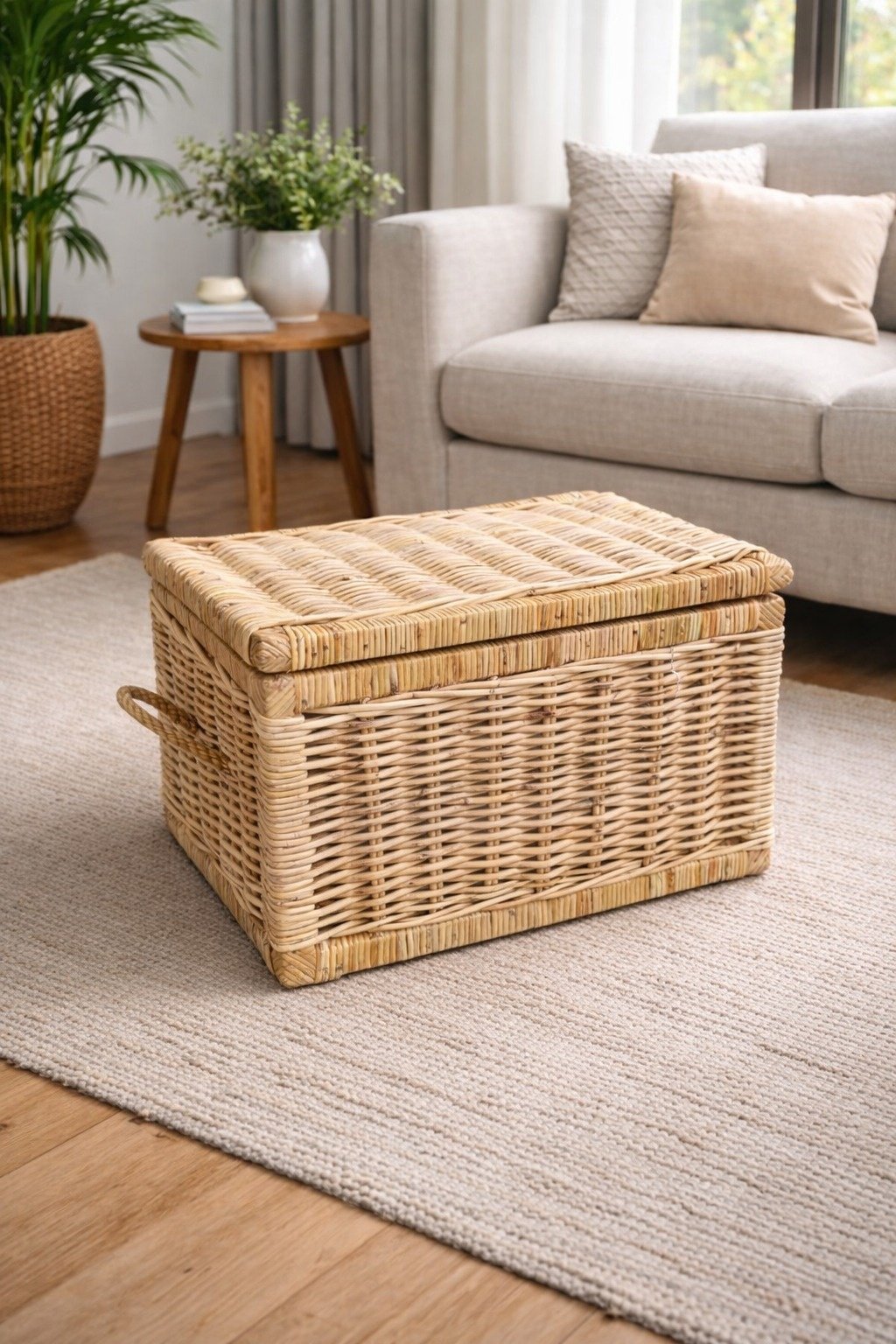 Deze naturelkleurige rotan opbergmand brengt met zijn warme, lichte uitstraling direct een gevoel van rust en sereniteit in je interieur. Dankzij het stevige deksel en de handige jute handvatten is deze kist niet alleen een prachtig decoratief element, maar ook een uiterst praktische oplossing om spullen stijlvol uit het zicht te houden. Het is de perfecte, lichte toevoeging die naadloos opgaat in elke woonstijl en zorgt voor een opgeruimd en gastvrij gevoel.