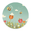 Deze muurcirkel van een tulpenveld behoort tot de collectie van een Ukkie & Boef. De bijen zoeken allemaal een bloem om te bestuiven. Een wandcirkel heeft een dikte van 5 mm en wordt gemaakt van Forex wat een soort van kunststof is.