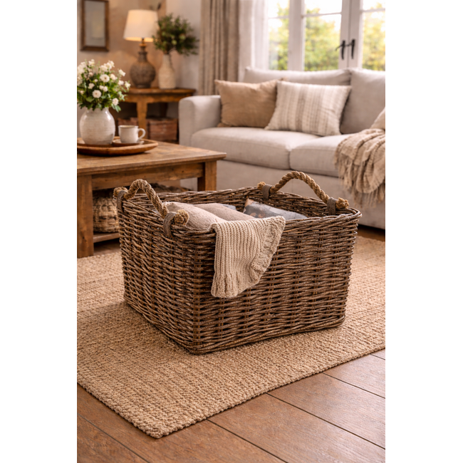 Deze antiek rieten opbergmand is onderdeel van de Sweet Living collectie. De opbergmand is gemaakt van een stevige kwaliteit riet en beschikt over jute handvatten aan de zijkanten. Deze rieten mand is multifunctioneel en kan bijvoorbeeld prima dienen als speelgoedmand, plantenmand of lectuurmand!