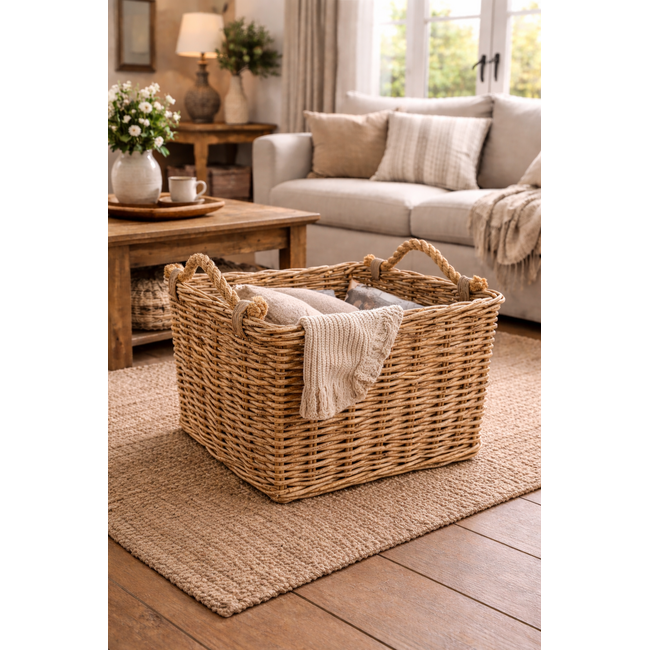 Deze naturel rieten opbergmand is onderdeel van de Sweet Living collectie. De opbergmand is gemaakt van een stevige kwaliteit riet en beschikt over jute handvatten aan de zijkanten. Deze rieten mand is multifunctioneel en kan bijvoorbeeld prima dienen als speelgoedmand, plantenmand of lectuurmand!