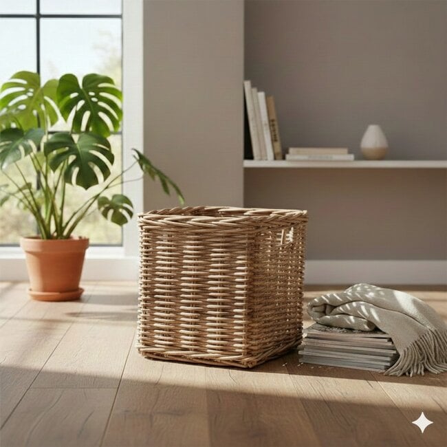 Deze vierkante rotan mand is van de Sweet Living collectie. De rotan mand heeft een natuurlijke look en is gemaakt van naturel rotan. De mand is voor allerlei doeleinden geschikt als plantenmand, opbergmand, maar ook als lectuurmand.